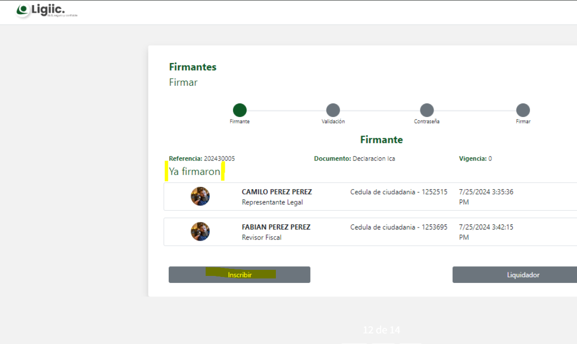 Si tienes dos firmantes realizas el mismo proceso con el otro. Debe aparecerte de la siguiente forma para saber que quedaron inscritos.